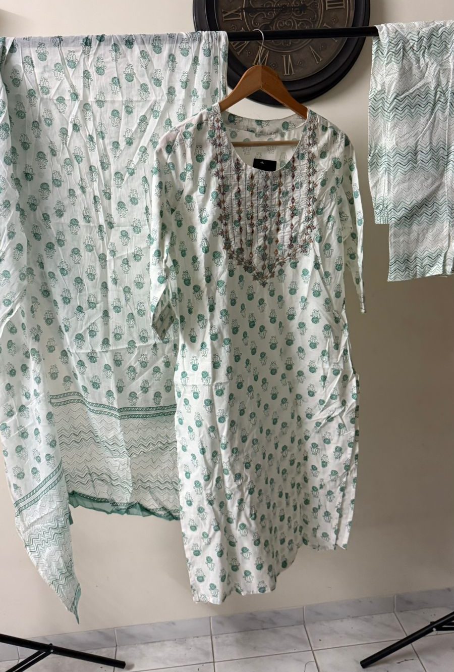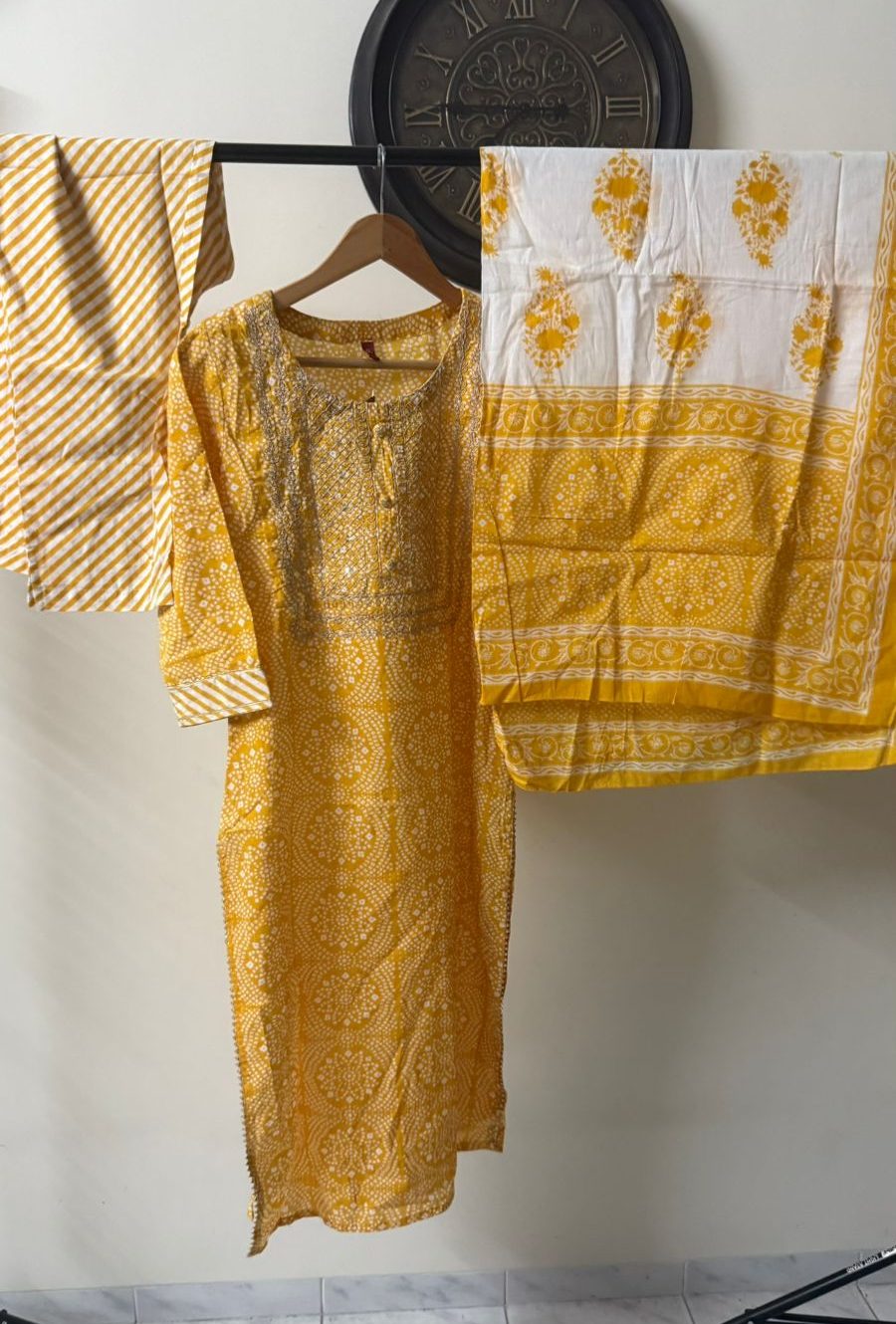 Stylish Set: Includes kaftan top and matching bottom.