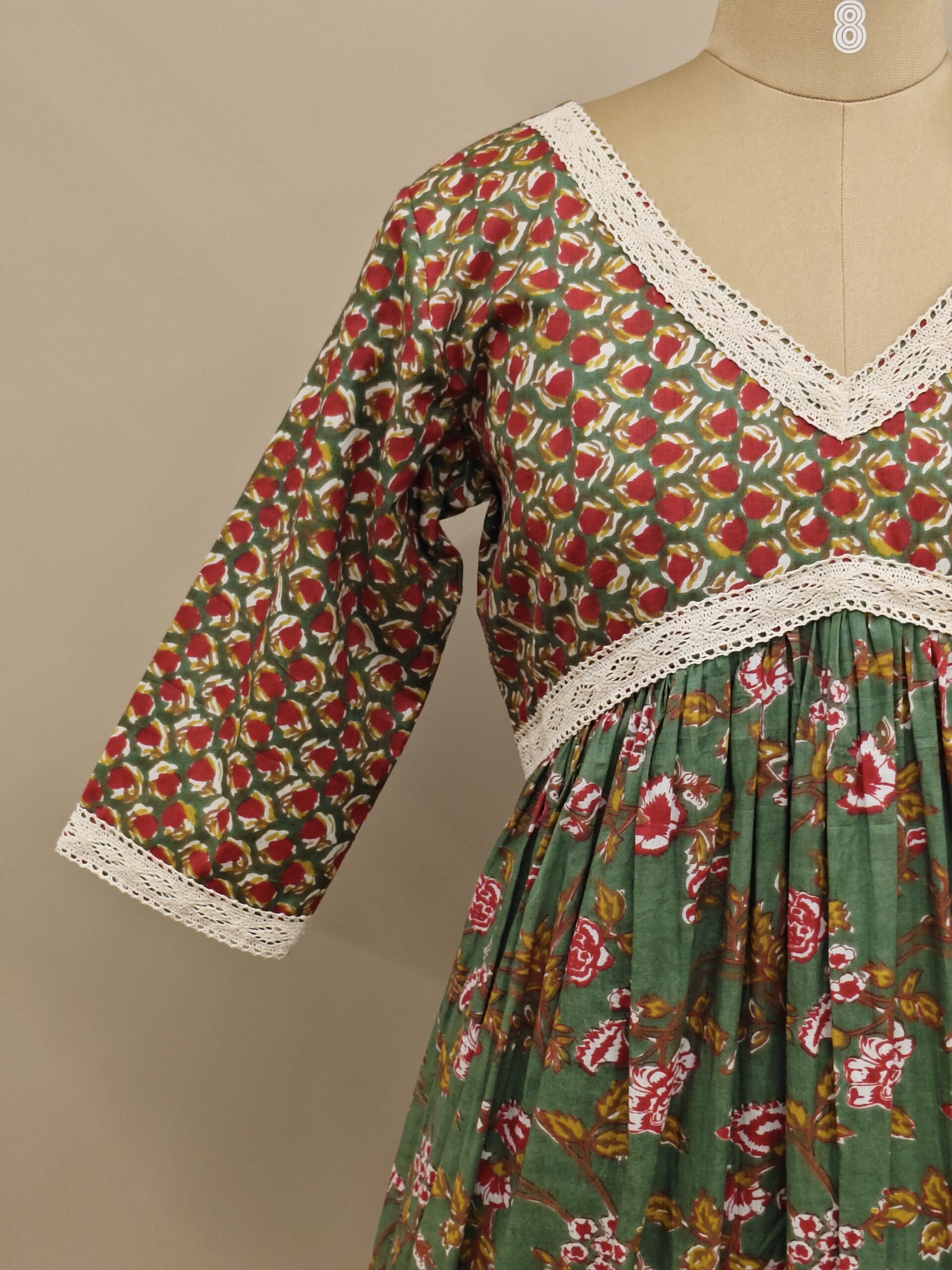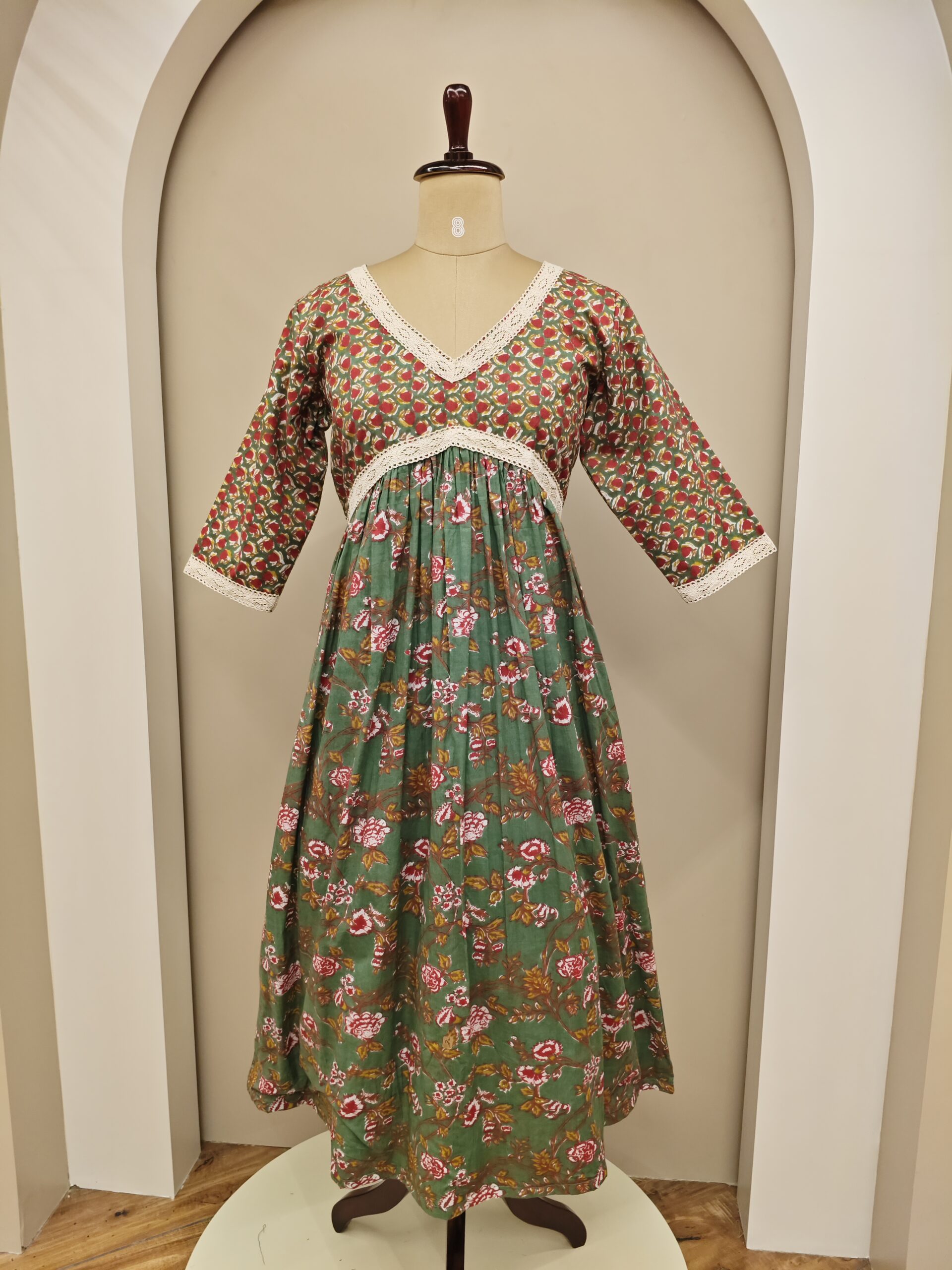 Grace meets comfort in this Aliya-cut Anarkali — featuring intricate floral prints, lace detailing, and a flattering empire silhouette. Perfect for effortless festive or casual elegance